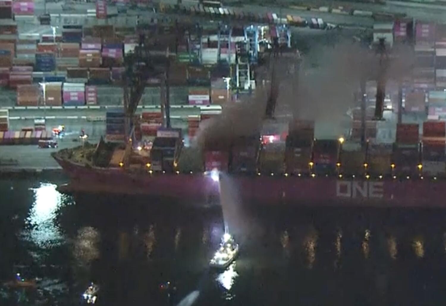 وذكرت عمدة لوس أنجليس كارين باس، أن أكثر من 100 من رجال الإطفاء يكافحون الحريق في ميناء لوس أنجليس. ويعرف الميناء بأنه الأكثر ازدحاماً في أميركا الشمالية.