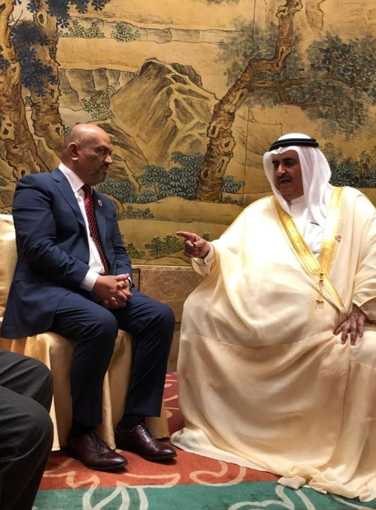 واستعرض الوزير اليماني خلال لقائه ،اليوم، نظيره البحريني الشيخ خالد آل خليفة، على هامش مشاركته في الاجتماع الوزاري لمنتدى التعاون العربي الصيني المنعقد في العاصمة الصينية بكين ،تطورات الاوضاع في بلادنا في مختلف الجوانب..مؤكداً التزام الحكومة بالحل السياسي ودعم جهود الأمين العام للأمم المتحدة من خلال مبعوثه الخاص الى اليمن لما من شأنه الوصول الى حل سياسي بناءاً على المرجعيات الاساسية الثلاث.