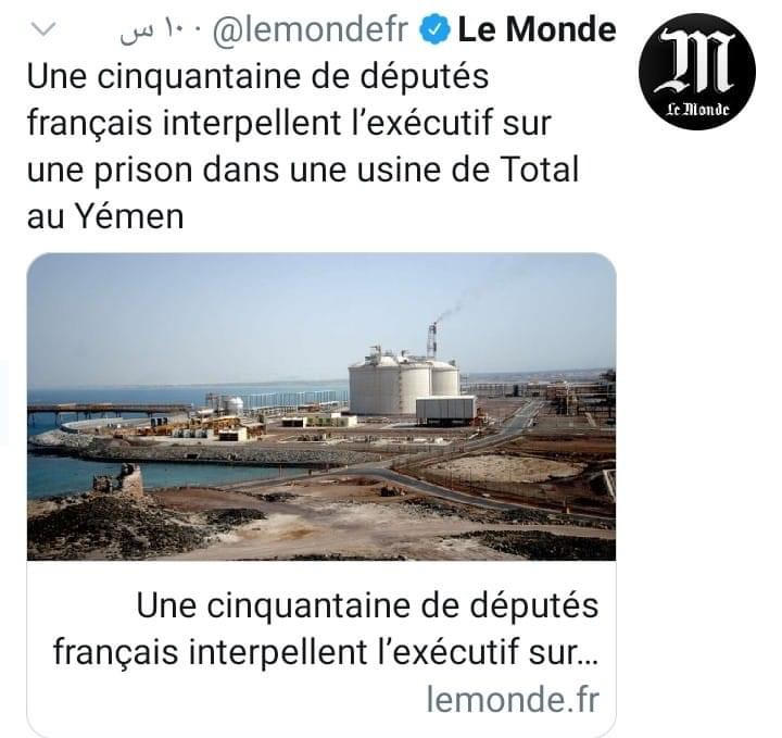 استجوب واحد وخمسون برلمانيا فرنسيا وزير الخارجية، "جان إيف لودريان"، بشأن وجود قاعدة عسكرية ومركز احتجاز للجيش الإماراتي في موقع غاز تديره شركة "توتال" في اليمن.