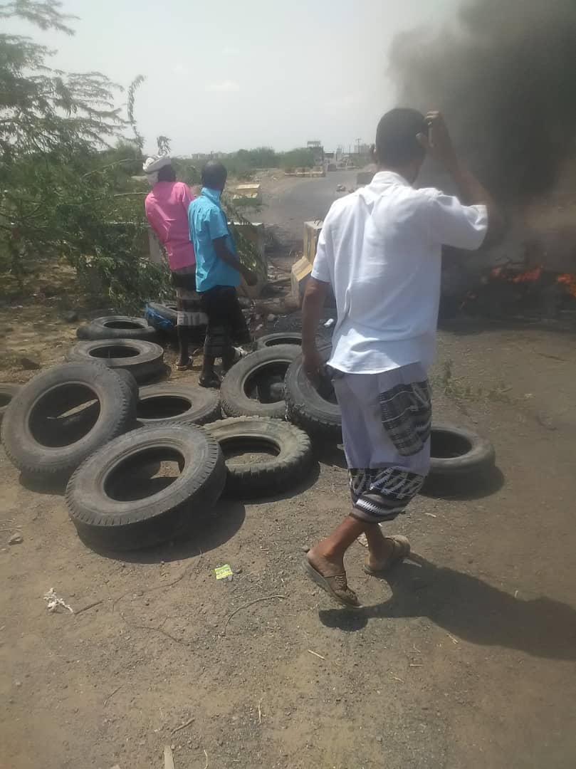 إطارات ملتهبة تغلق بوابة قاعدة العند أمام القيادة السعودية