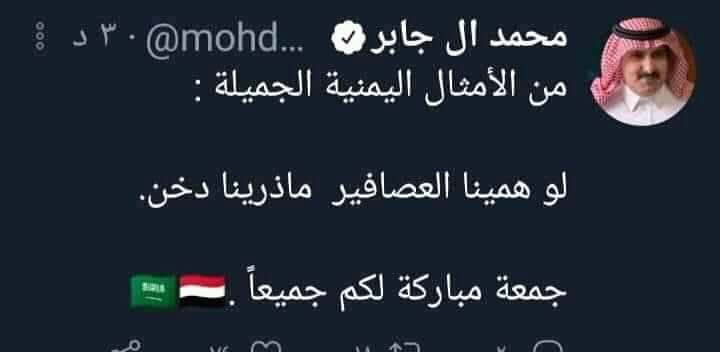 نشر السفير السعودي في اليمن محمد ال جابر تغريده مبهمة قبل قليل على حسابه الموثق في تويتر رصدها موقع ابناء عدن جاء فيها :( من الأمثال اليمنية الجميلة : لو همينا...
