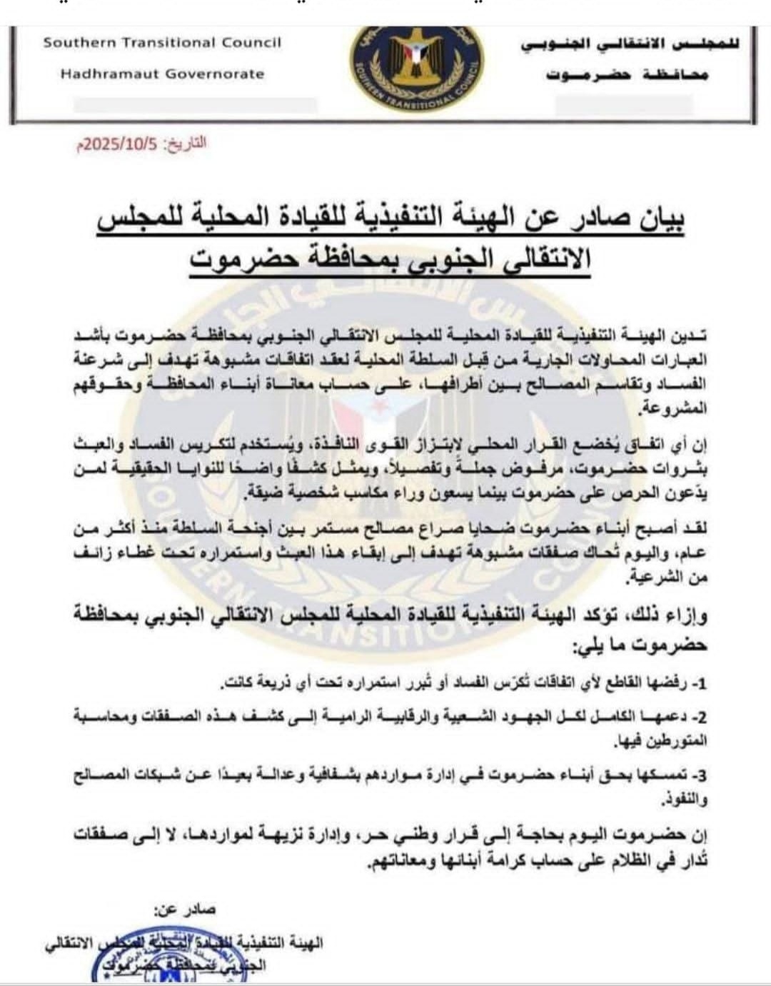 قال الصحفي الحضرمي اليمني "صبري بن مخاشن" المقرب من حلف قبائل حضرموت ،ان فرع المجلس الانتقالي في حضرموت قام بسابقة خطيرة وغير مسؤولة، باصداره...