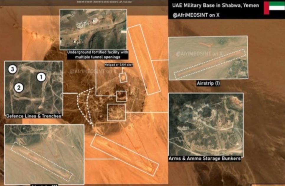 كشفت صور أقمار صناعية جديدة عن إنشاء الإمارات ، قاعدة عسكرية كبيرة في محافظة شبوة الغنية بالنفط جنوب شرقي اليمن .