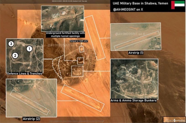 كشفت صور أقمار صناعية جديدة عن إنشاء الإمارات ، قاعدة عسكرية كبيرة في محافظة شبوة الغنية بالنفط جنوب شرقي #اليمن .