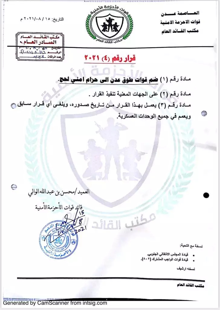 قائد الأحزمة الأمنية التابعة للمجلس الإنتقالي الجنوبي الذي أصدره في منتصف أغسطس المنصرم...