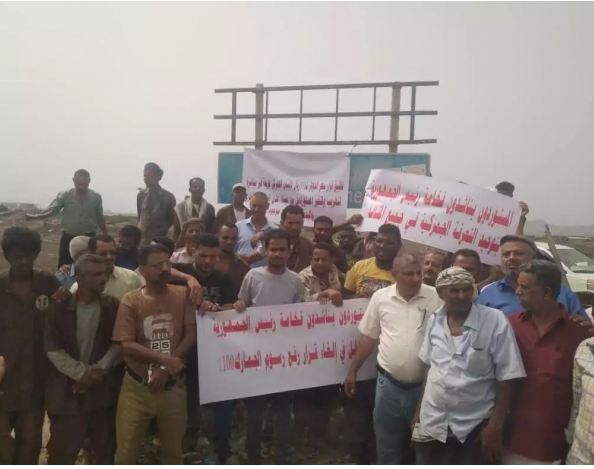 نفذ عمال جمارك ميناء عدن، وقفة احتجاجية جديدة تنديدا بقرار حكومي بزيادة أسعار المصارفة في معاملات التخليص الجمركي إلى 500 ريالا للدولار الواحد ارتفاعا من 250 ريالا.
