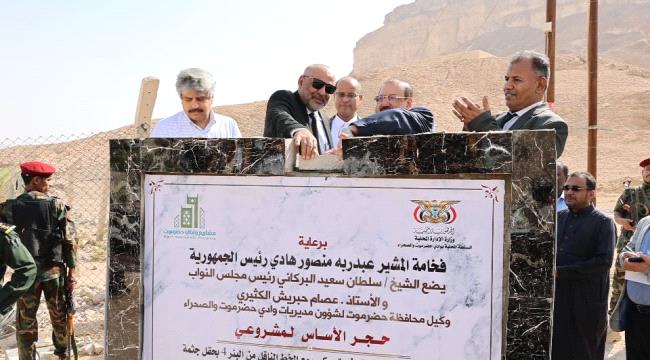 قام رئيس مجلس النواب الشيخ سلطان البركاني، صباح أمس يإفتتاح ووضع حجر الأساس لمجموعة من المشاريع الخدمية بمدينة سيئون.
