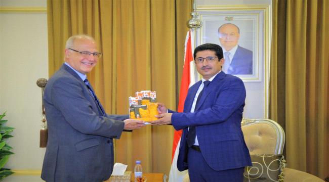 استقبل وكيل وزارة الخارجية للشؤون السياسية السفير الدكتور منصور بجاش اليوم السفير البريطاني لدى اليمن مايكل آرون بمناسبة انتهاء فترة عمله.