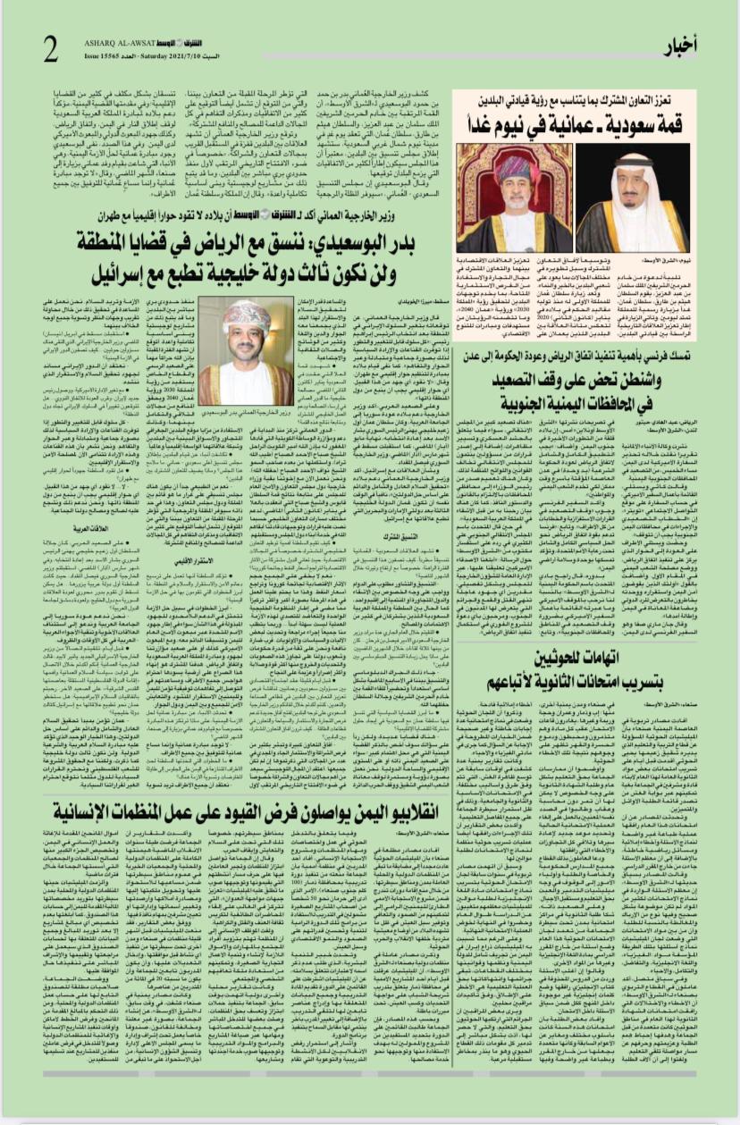 كشف وزير الخارجية العُماني بدر بن حمد بن حمود البوسعيدي لـ«الشرق الأوسط»، أن القمة المرتقبة بين خادم الحرمين الشريفين الملك سلمان بن عبد...
