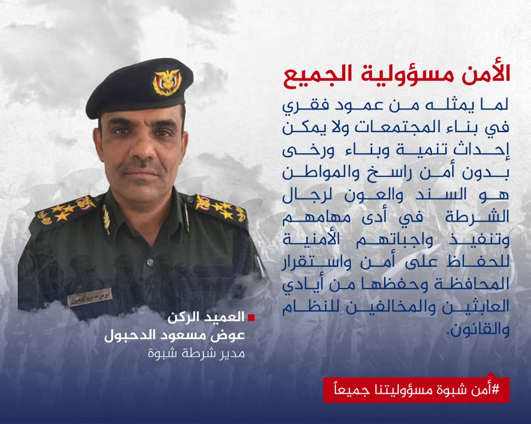اللجنة الأمنية في محافظة شبوة ترحب ببيان الخارجية السعودية وتؤكد رفضها اقامة أي فعاليات غير مرخص بها.