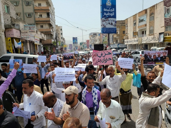 شهدت مدينة تعز، الخميس، مسيرة حاشدة طالبت بإقالة المسؤولين الفاسدين.