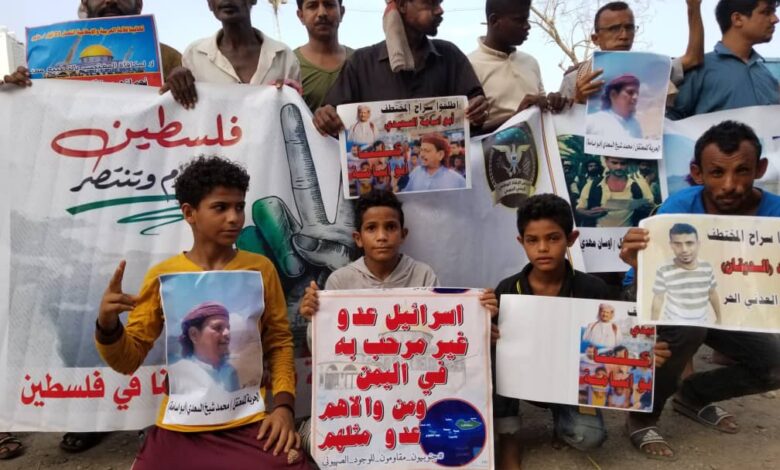 رفعوا خلالها صور المعتقلين والمخفيين قسرا .. إقامة فعالية في العاصمة عدن أقيمت فعالية ، عصر الأربعاء ، في العاصمة عدن احتفالا بالإنتصار الفلسطيني على الكيان...