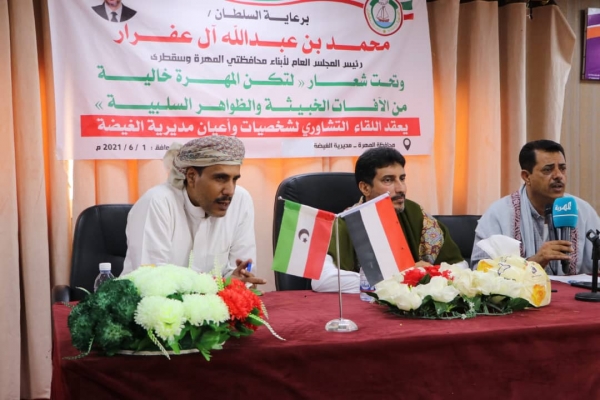 أكّد السلطان محمد عبدالله آل عفرار رئيس المجلس العام لأبناء محافظتي المهرة وسقطرى حرص قيادات المجلس على أن تكون المهرة خالية من كل الظواهر والآفات السلبية.