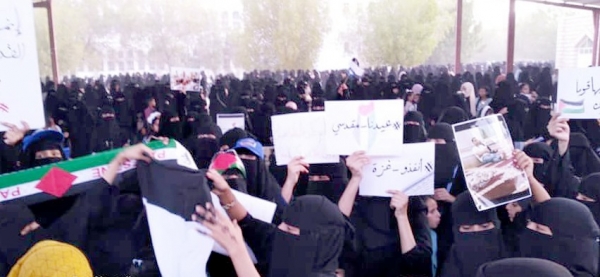 شهدت مدينة سيئون بمحافظة حضرموت، الجمعة، مظاهرة نسائية احتجاجية، تندد بالعدوان الصهيوني على الشعب الفلسطيني.