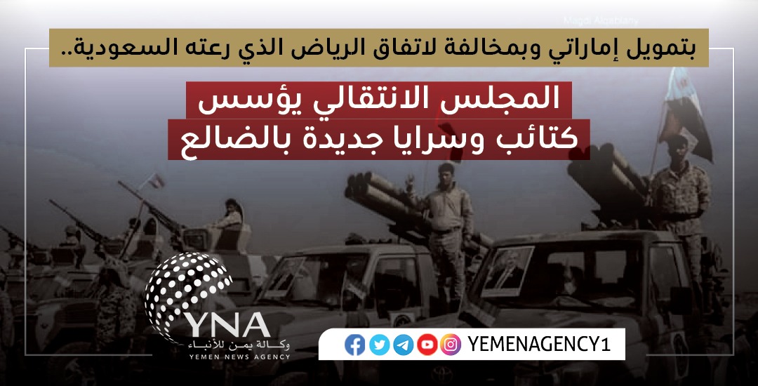 أفادت مصادر محلية ان المجلس الانتقالي المدعوم إماراتيا، يقوم بتأسيس تشكيلات عسكرية وأمنية مناطقية بعيدا عن الدولة وبدعم اماراتي.