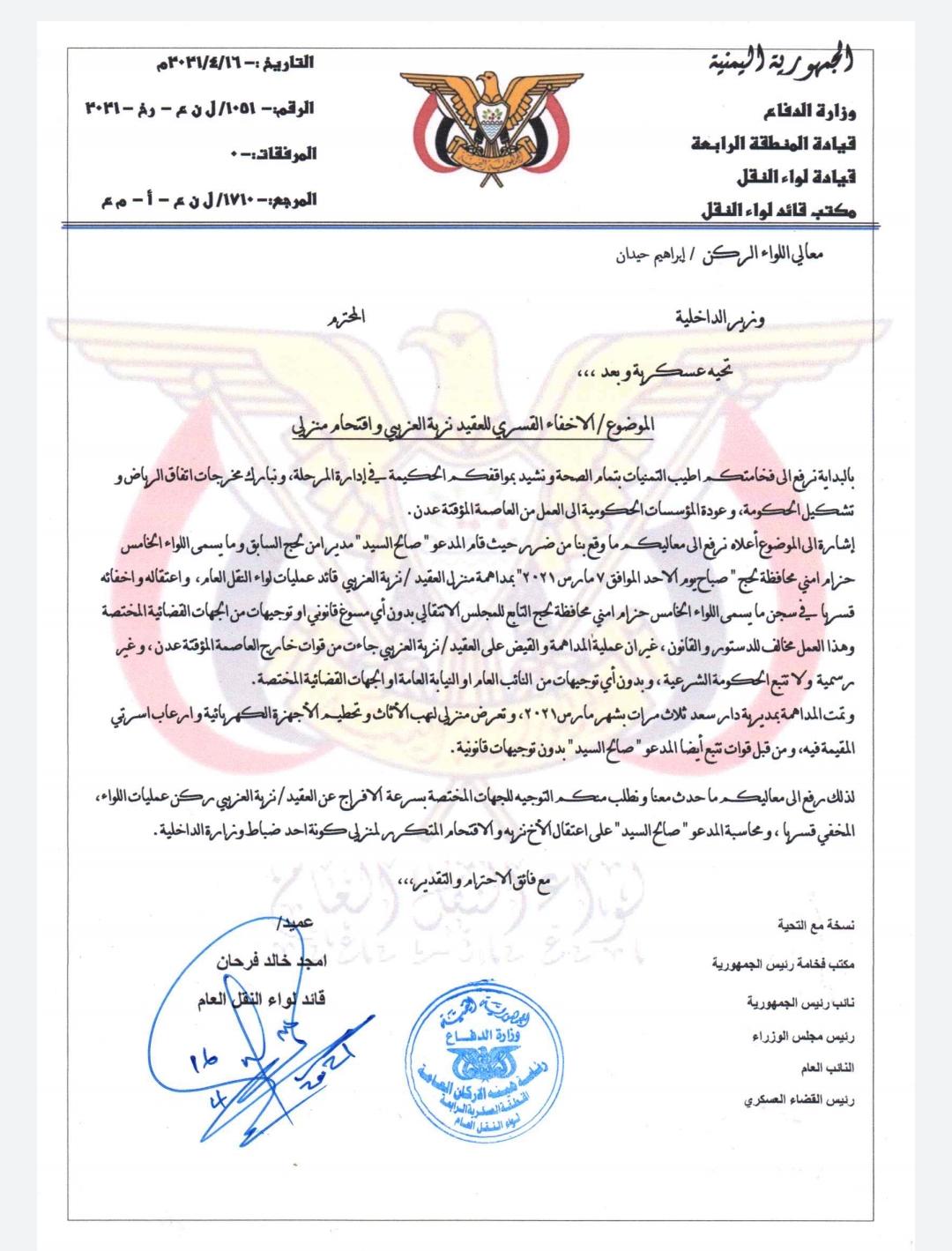*العميد أمجد خالد يطالب وزير الداخلية بإيقاف المدعو صالح السيد ومحاسبته على العبث الأمني.*