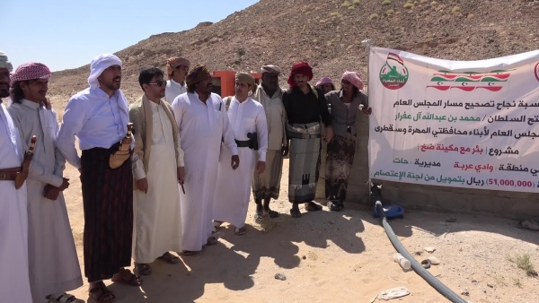 دشّن السلطان محمد عبدالله آل عفرار والوفد المرافق معه من قيادات لجنة الاعتصام والمجلس العام مشروع بئر مياه مع مكينة ضخ وخزان للمياه في وادي عربه في مديرية حات...