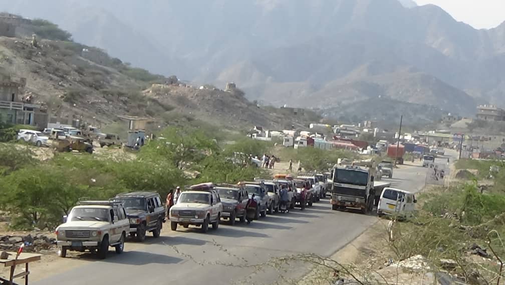 قافله محافظه لحج المقدمه لمارب الصمود يتم منعها واحتجازها من قبل الحزام الأمني في نقطه العلم ....