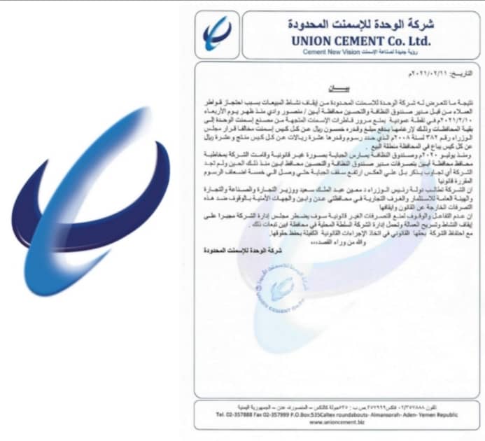 اثار القرار التعسفي والمجحف الذي اتخذه المجلس المحلي وصندوق النظافة والتحسين في محافظة أبين ، بحق مصنع إسمنت الوحدة – أبين ، والذي قضى برفع رسوم تحسين الطرقات على...