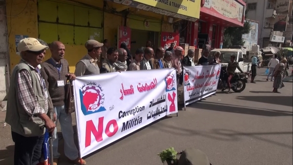 نفّذ العشرات من المواطنين في مدينة تعز، اليوم السبت، وقفة احتجاجية تطالب الحكومة بإيجاد حلول عاجلة لانهيار الريال أمام العملات الأجنبية.