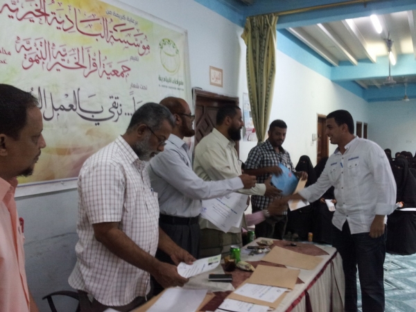احتفلت جمعية اقرا التنموية عدن بتخريج 202 متدرب في مجال العمل المؤسسي وبرعاية كريمة من مؤسسة البادية الخيرية في اطار الشراكة بينهم حيث حمل البرنامج شعار ( معاً .. نرتقي بالعمل المؤسسي) افتتح الحفل بآيات من الذكر الحكيم بعدها توجه الاستاذ طارق العزاني رئيس الجمعية بكلمته مرحبا بالضيوف والمتدربين ومشيداً بدور مؤسسة البادية في انجاح البرنامج الذي استمر منذ ديسمبر العام الماضي وتوزعت دوراته على الاشهر الماضيه في مختلف مجالات العمل الاداري , من جهته تحدث الاستاذ مبارك يسلم بن شهاب عضو الهيئة الادارية لمؤسسة البادية مبدياً سعادته لنجاح البرنامج وحث في كلمته المتدربين على اتمام رسالة البرنامج التدريبي ونقلها الى الى الاخرين في مؤسساتهم ومبادراتهم ناقلا تحيات مؤسسة البادية في حضرموت الى جميع المتدربين الذين اجتازوا البرنامج بنجاح